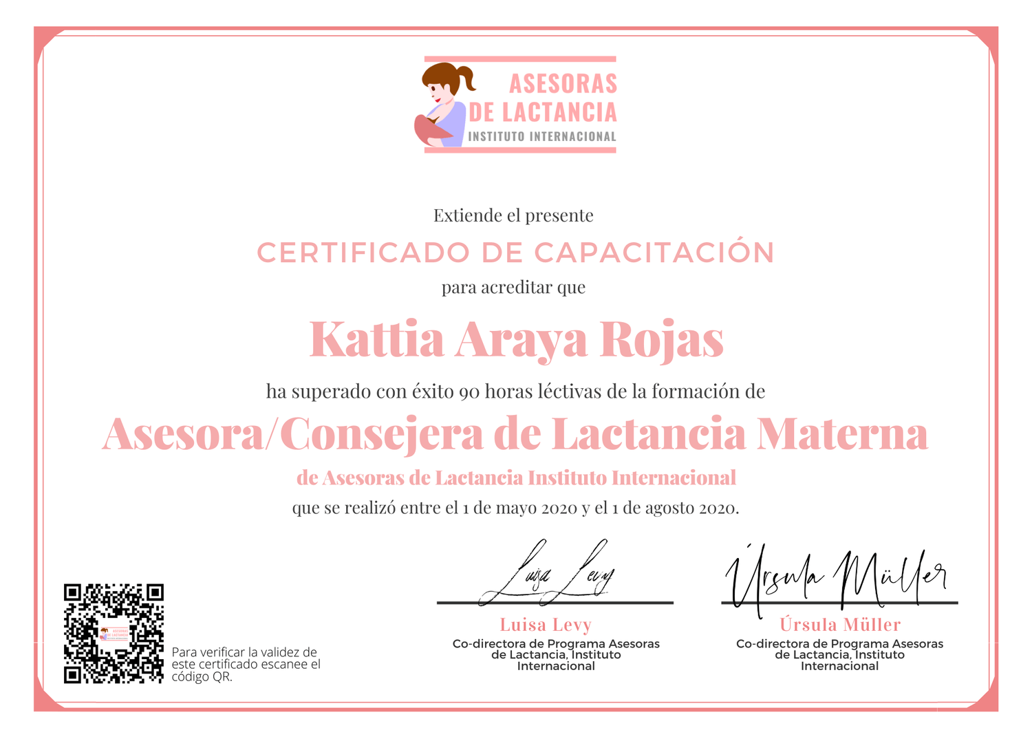 Fecha: septiembre 2020 Nombre: Kattia Araya Rojas Asesora de Lactancia Avance: 100.00% Puntaje: 95/100