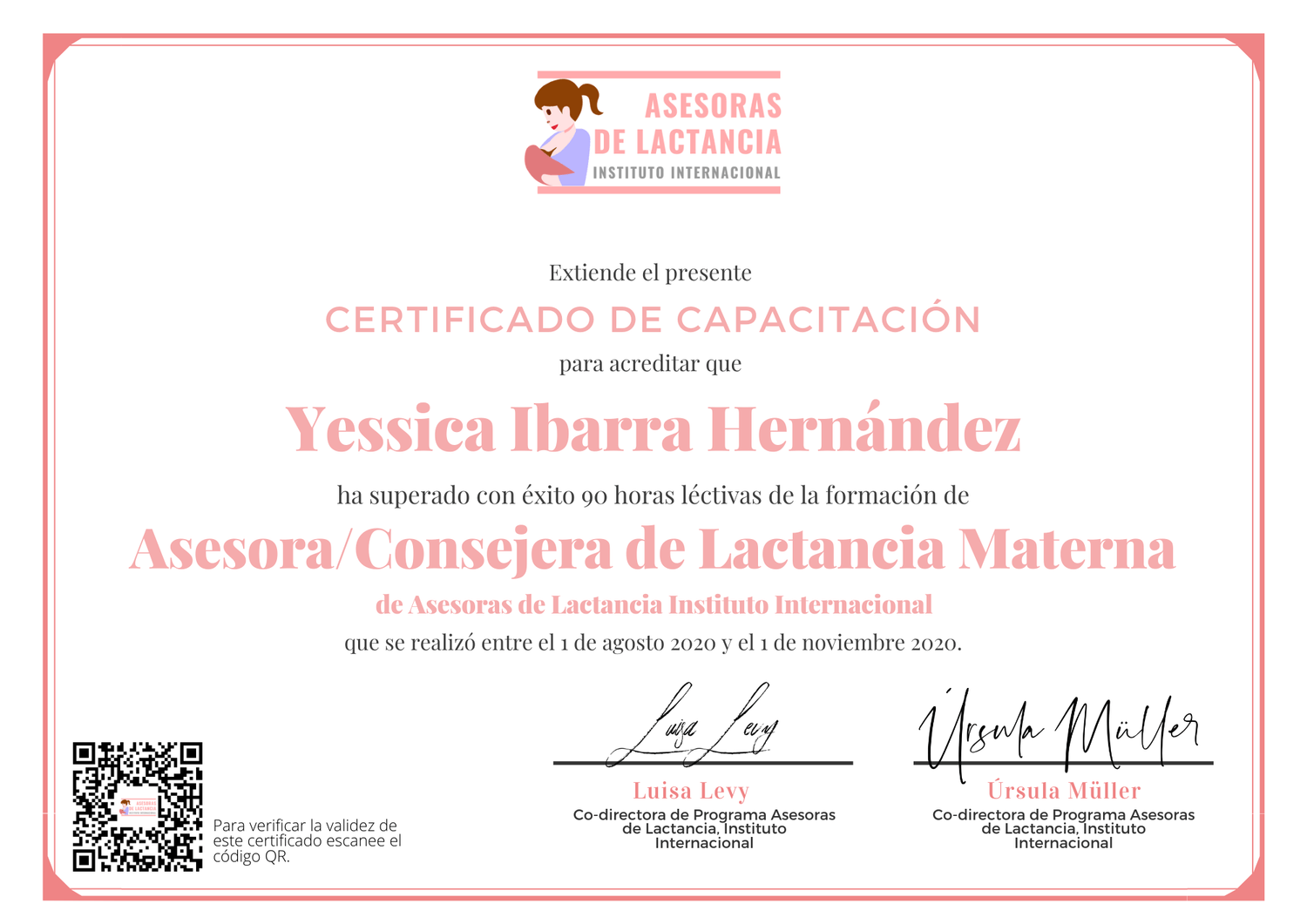 Fecha: octubre 2020 Nombre: Yessica Ibarra Hernández Asesora de Lactancia Avance: 100.00% Puntaje: 95/100